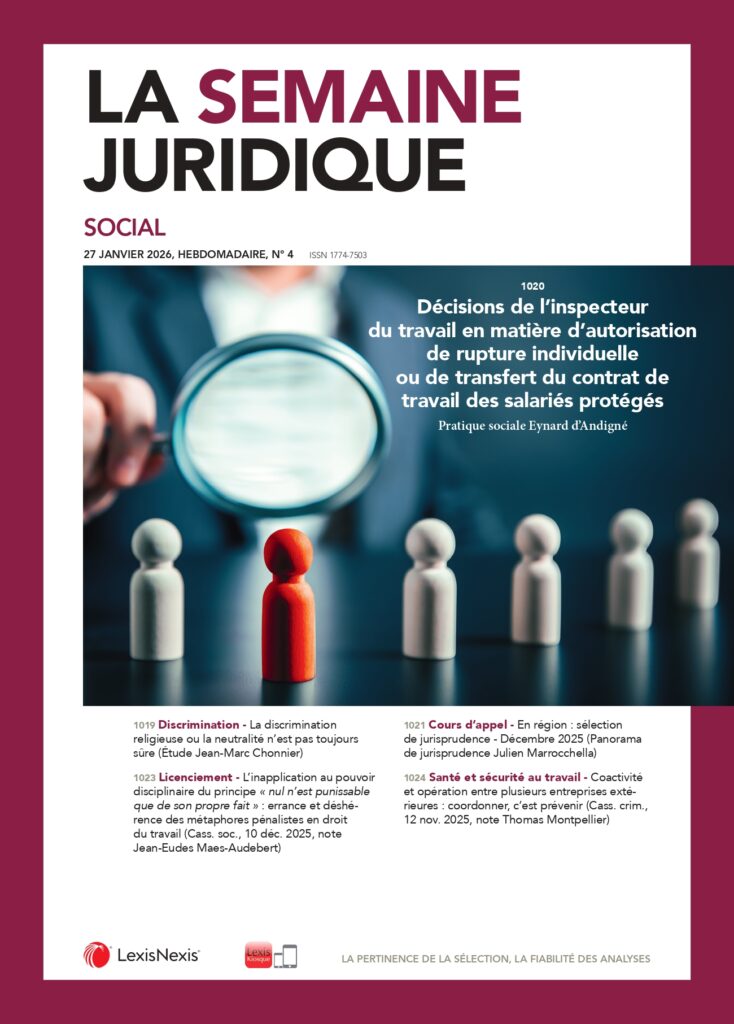 Décisions de l’inspecteur du travail concernant les salariés protégés (JCP S, 27 janvier 2026)