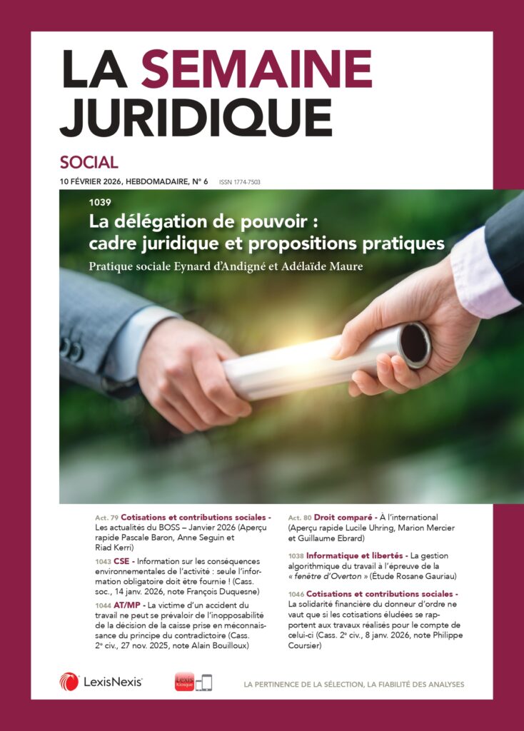 La délégation de pouvoir : cadre juridique et propositions pratiques (JCP S, 10 février 2026)